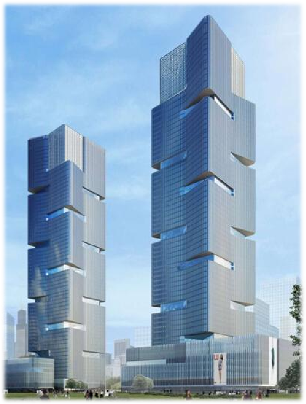 鄭東綠地中心項(xiàng)目位于鄭州市地鐵、高鐵交匯處的鄭東新區(qū)商住物流園區(qū)內(nèi),規(guī)劃總建筑面積約45萬平方米,兩棟300米高樓矗立于寬闊的高鐵站西廣場西側(cè)。