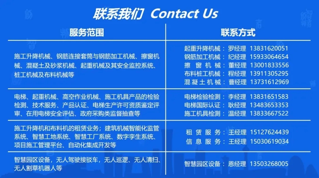 凱博科技重點(diǎn)推介智能施工升降機(jī)、工業(yè)升降機(jī)、施工升降平臺(tái)、鋼筋智能化加工生產(chǎn)線、混凝土布料機(jī)、混凝土運(yùn)輸布料車等創(chuàng)新產(chǎn)品。凱博擦窗重點(diǎn)展示俯仰型、伸縮臂型等多系列擦窗機(jī)產(chǎn)品特點(diǎn)以及在國(guó)家金融信息中心、上海臨港西島金融中心、俄羅斯宇航局中心大廈、埃及新首都中央商務(wù)區(qū)(CBD)等國(guó)內(nèi)外標(biāo)志性項(xiàng)目的應(yīng)用案例。建研檢測(cè)重點(diǎn)推介“檢測(cè)+國(guó)際認(rèn)證一站式”服務(wù)理念,向觀展客戶詳細(xì)介紹檢測(cè)業(yè)務(wù)能力以及目前已簽約的TüV南德、TüV萊茵、俄羅斯賽懇、土耳其GCN、澳大利亞CSI等多家國(guó)際知名認(rèn)證機(jī)構(gòu)。